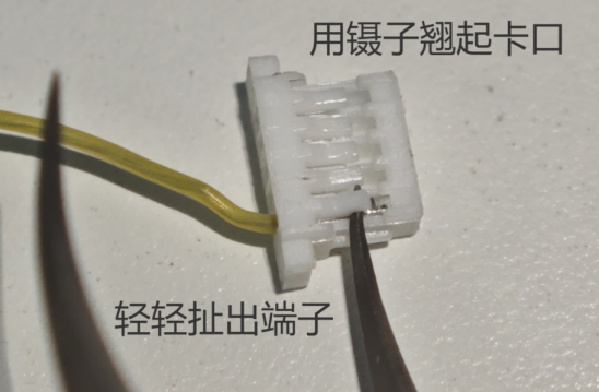 如果端子插错孔位或是需要调整线序,不要强行拉出。需要先用细针、镊子或其他工具翘起胶壳卡口,再将端子从胶壳中缓慢退出。